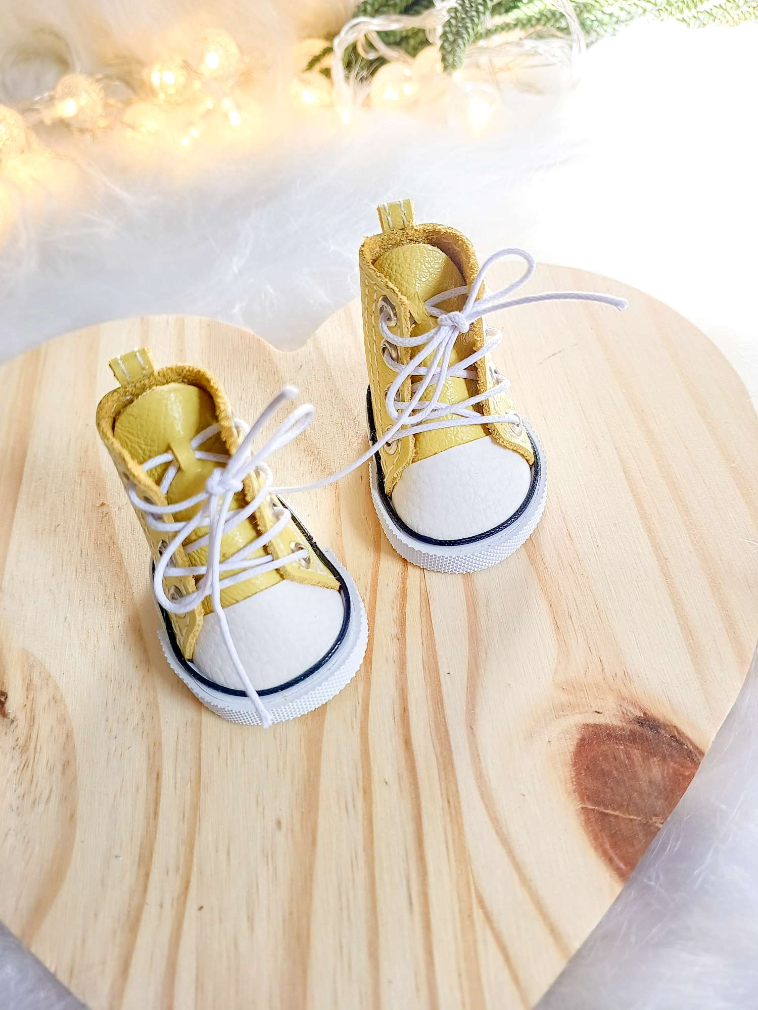 Tênis para boneca russa estilo all star em couro legítimo modelo cano alto amarelo. Feito artesanalmente!!