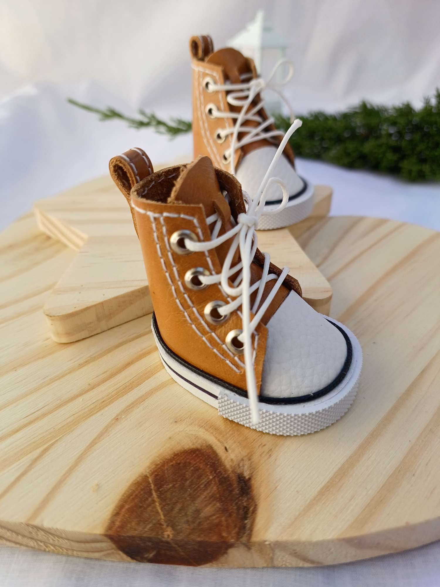 Tênis para boneca russa estilo all star em couro legítimo modelo cano alto caramelo. Feito artesanalmente!!
